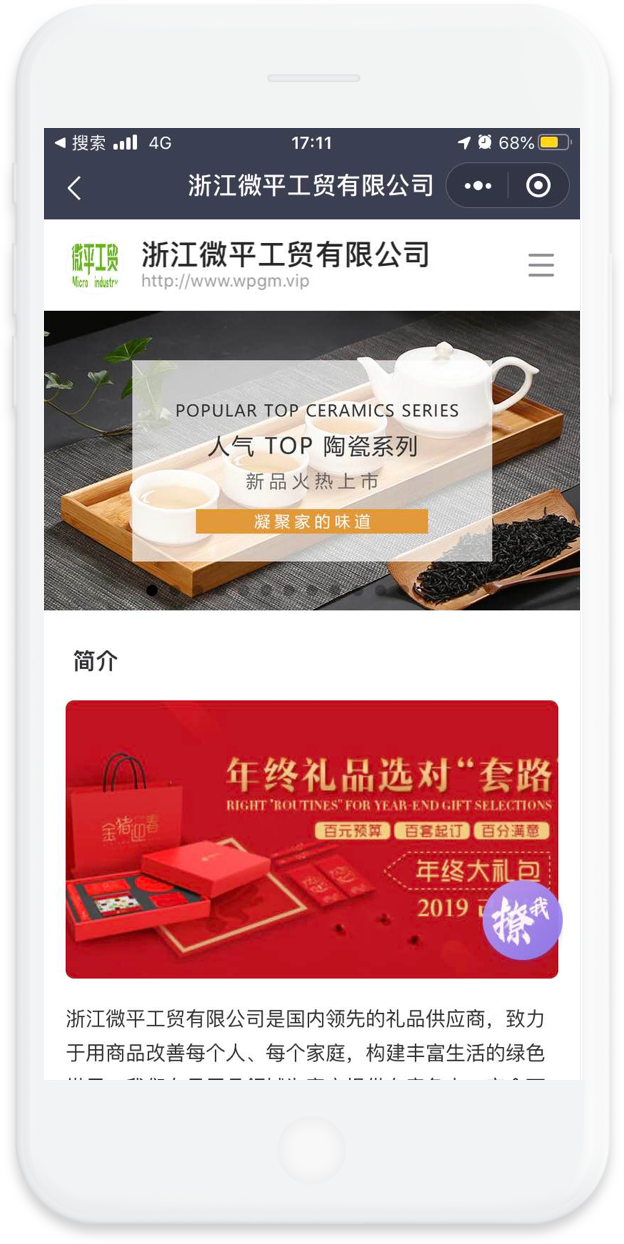 微平工贸成立于2018年,是一家集研发、生产、销售为一体的高新技术企业。 通过极速官微建站系统快速搭建了一个精美小程序官网。 轻松构筑了属于自己的社交体系,吸引了众多流量。